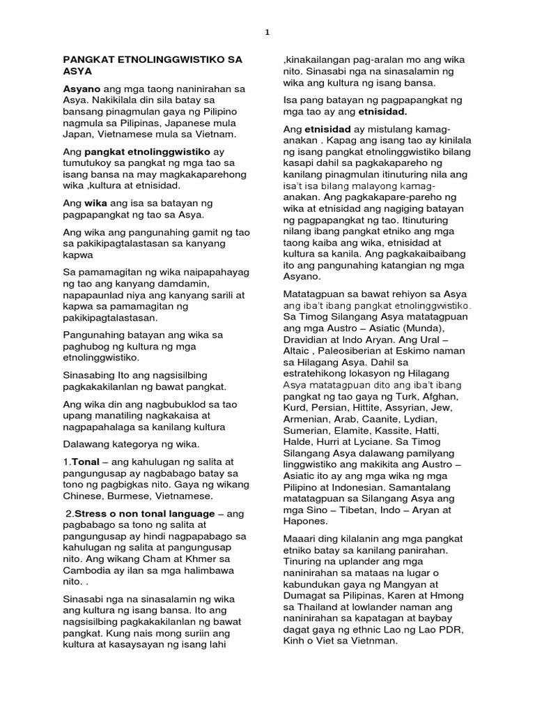 Pangkat Etnolinggwistiko Sa Asya Pdf